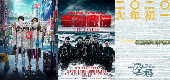 电影《唐人街探案3》《紧急救援》《囧妈》海报。